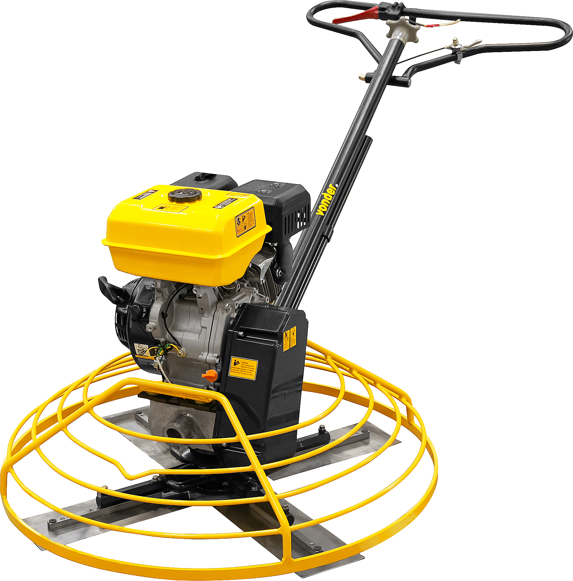 Utilizada no desempeno de concreto em obras, permitindo ótimo acabamento. Diâmetro de trabalho 36". Permite utilização com disco de acabamento (disco de flotação).