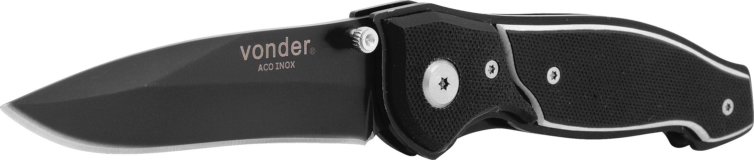 Possui lâmina em aço inox, proporcionando maior resistência à oxidação/corrosão. Cabo ergonômico com revestimento em fibra de vidro e resina para maior conforto no manuseio e clipe metálico para cinto.