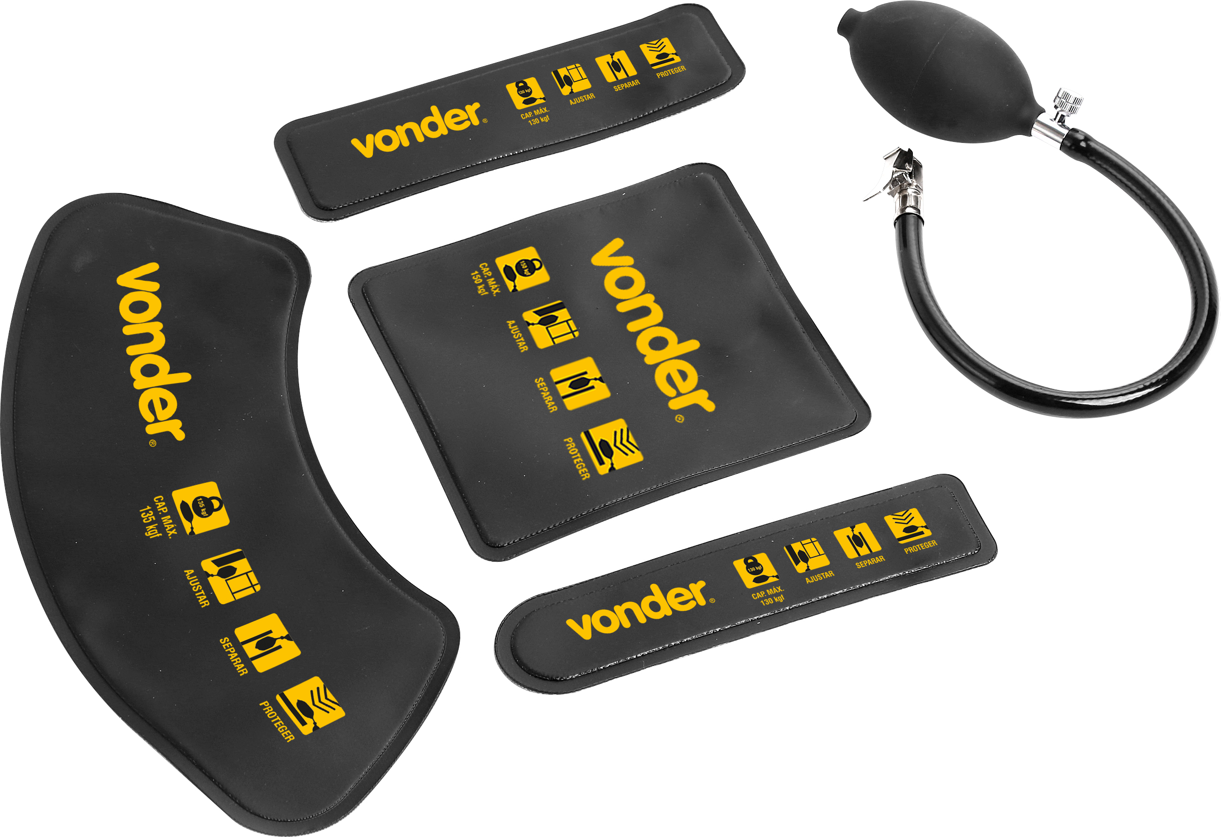 1 Jogo com 5 peças, sendo: 4 bolsas infláveis e 1 bomba com mangueira para encher as bolsas.